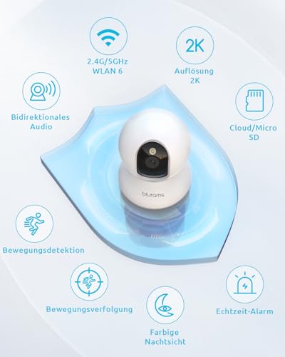 blurams 2K WLAN Kamera überwachung innen 360° Drehung Baby Monitor & Haustierüberwachung, Vollfarb-Nachtvision, Zweiweg-Audio, Menschenerkennung, 2.4G/5G WiFi 6, Kompatibel Mit Alexa