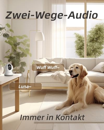 • 【Klares Zwei-Wege-Audio】Die integrierten Mikrofone und Lautsprecher ermöglichen eine Fernkommunikation über die indoor Kamera, sodass Sie reibungslos und klar mit Ihrem Baby oder Haustier sprechen können.